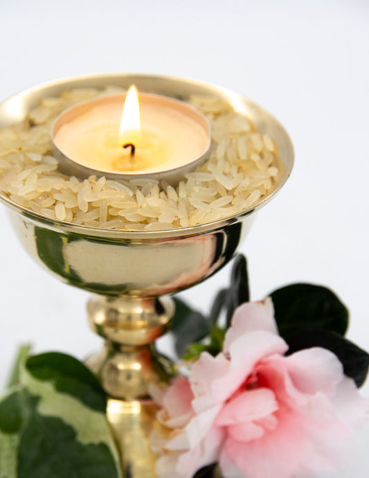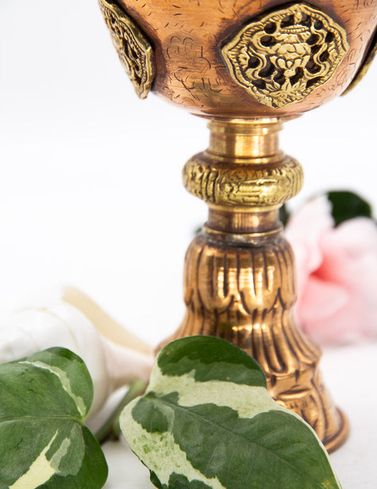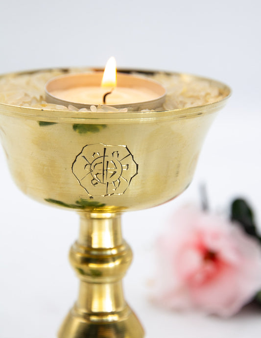 Handcrafted Embossed Butter Lamp, Silver & Gold-Plated / 10.5cm