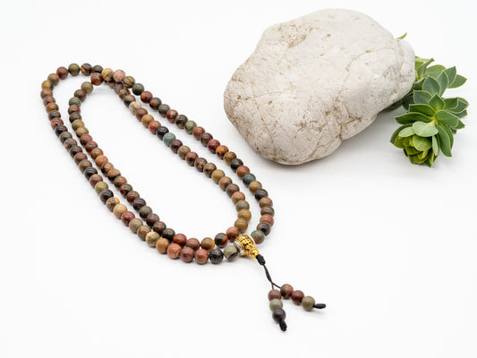Sandalwood & Taiwanese Jade Mala – 6mm