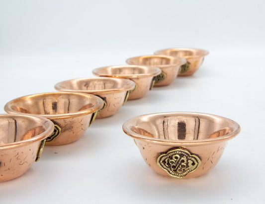Engraved Offering Bowl Set, Polished Copper – 8cm