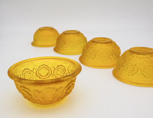 Auspicious Symbols Offering Bowl Set, Yellow Glass – 10 cm