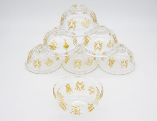 Golden Auspicious Symbols Offering Bowl Set, Glass – 9 cm