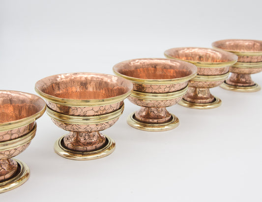 Footed Engraved Offering Bowl Set, Polished Copper – 8cm