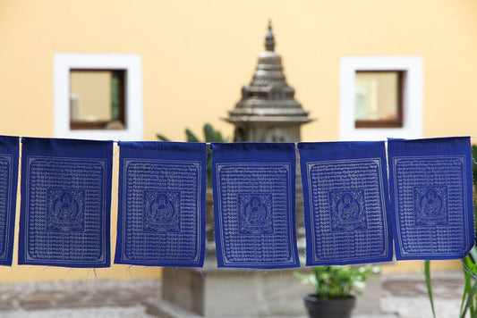 Where mountain-tops are not accessible, the flags can ornament our garden, balcony, and windows, or can even be hung indoors to bless our living space. You can always have them hung here at Gomde too.