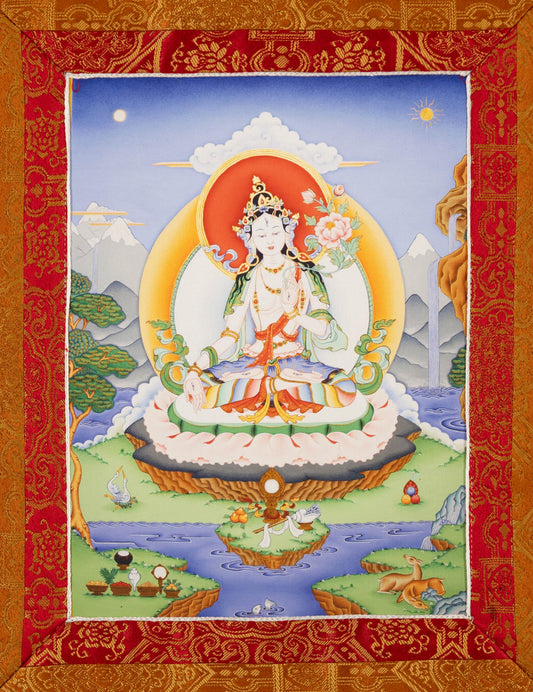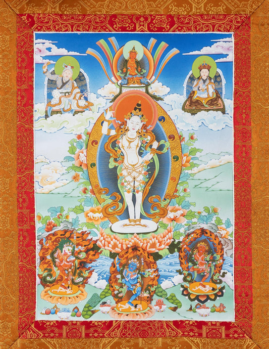 White Chenrezig Prayer Flags, 26x31cm, 6.4m
