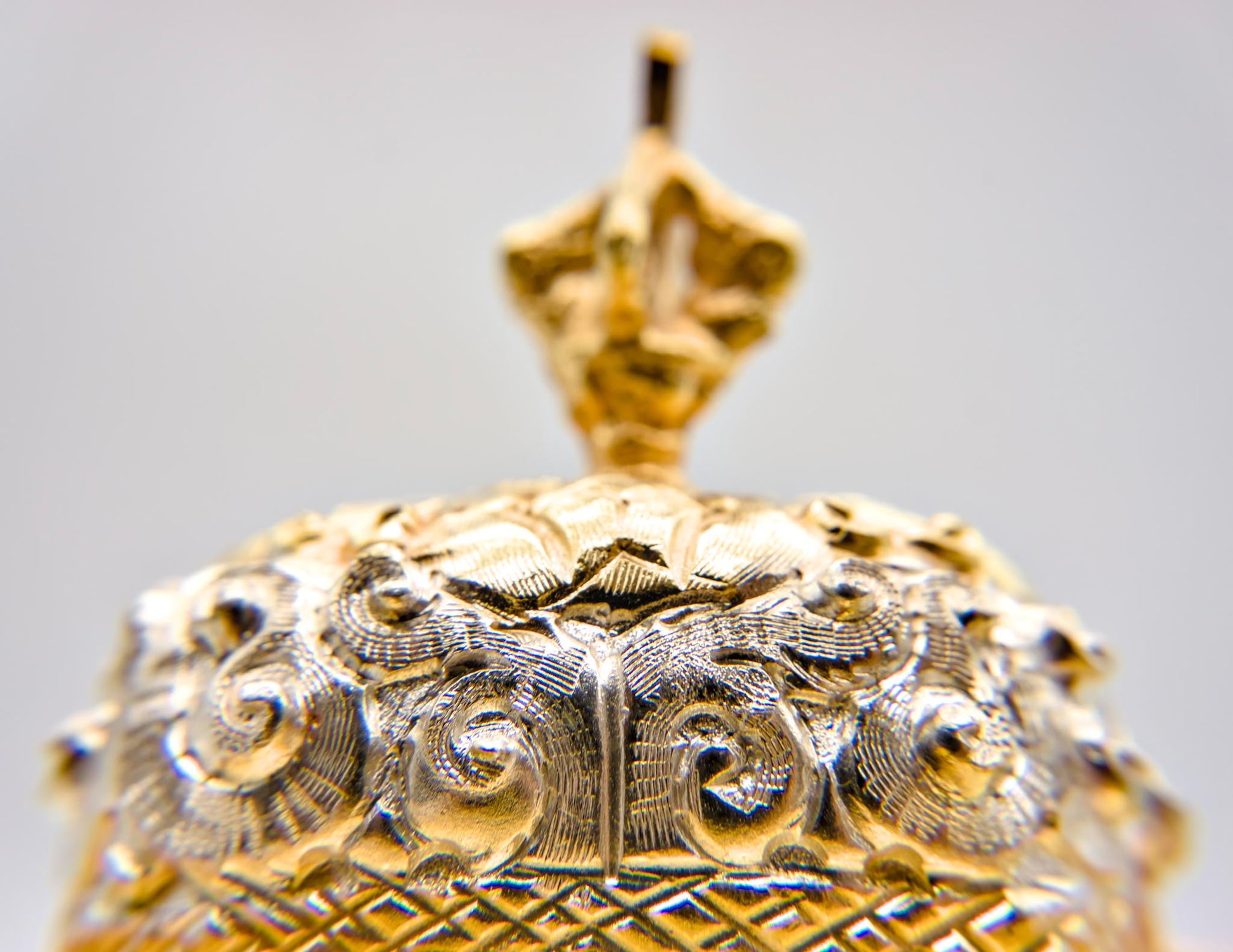 Hergestellt aus vergoldetem und versilbertem Kupfer.