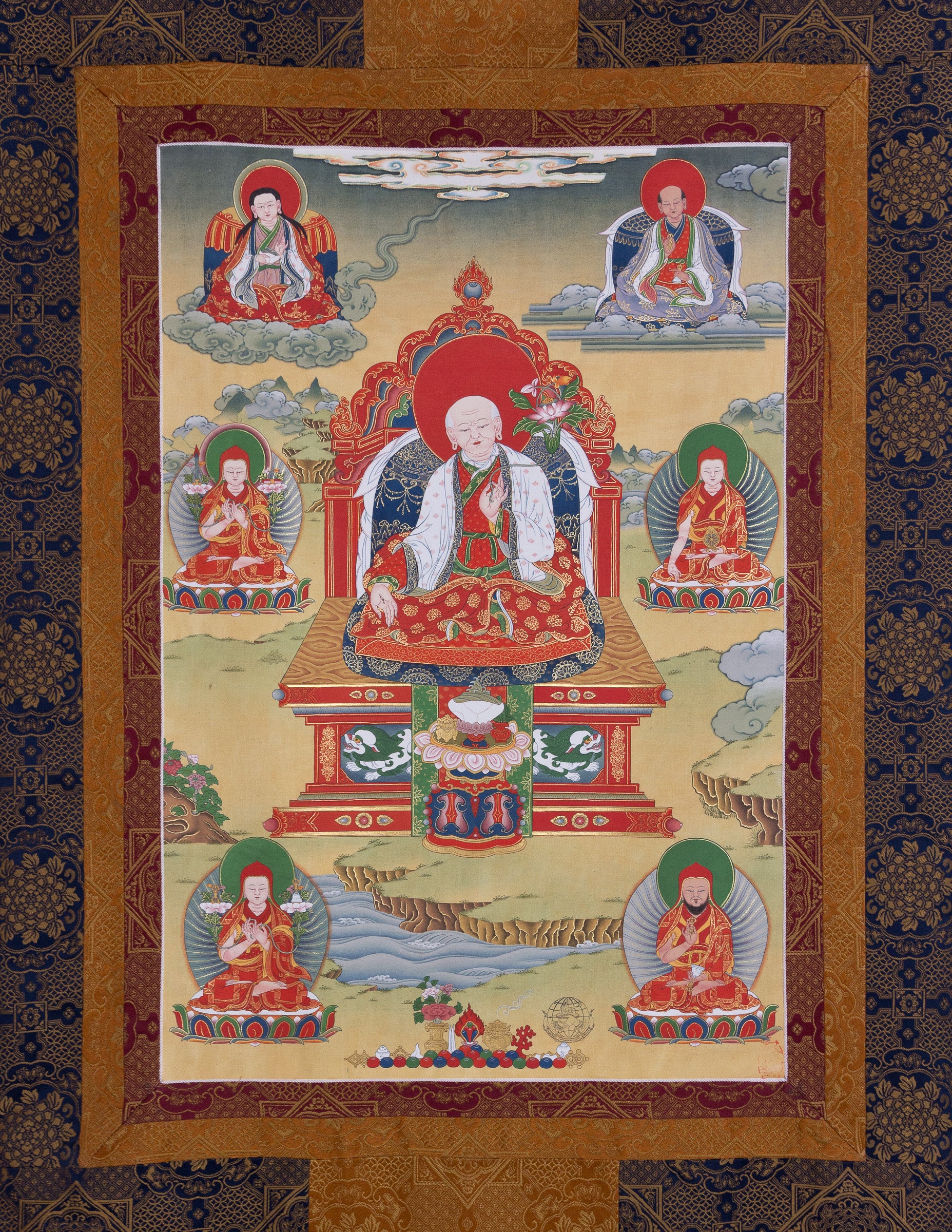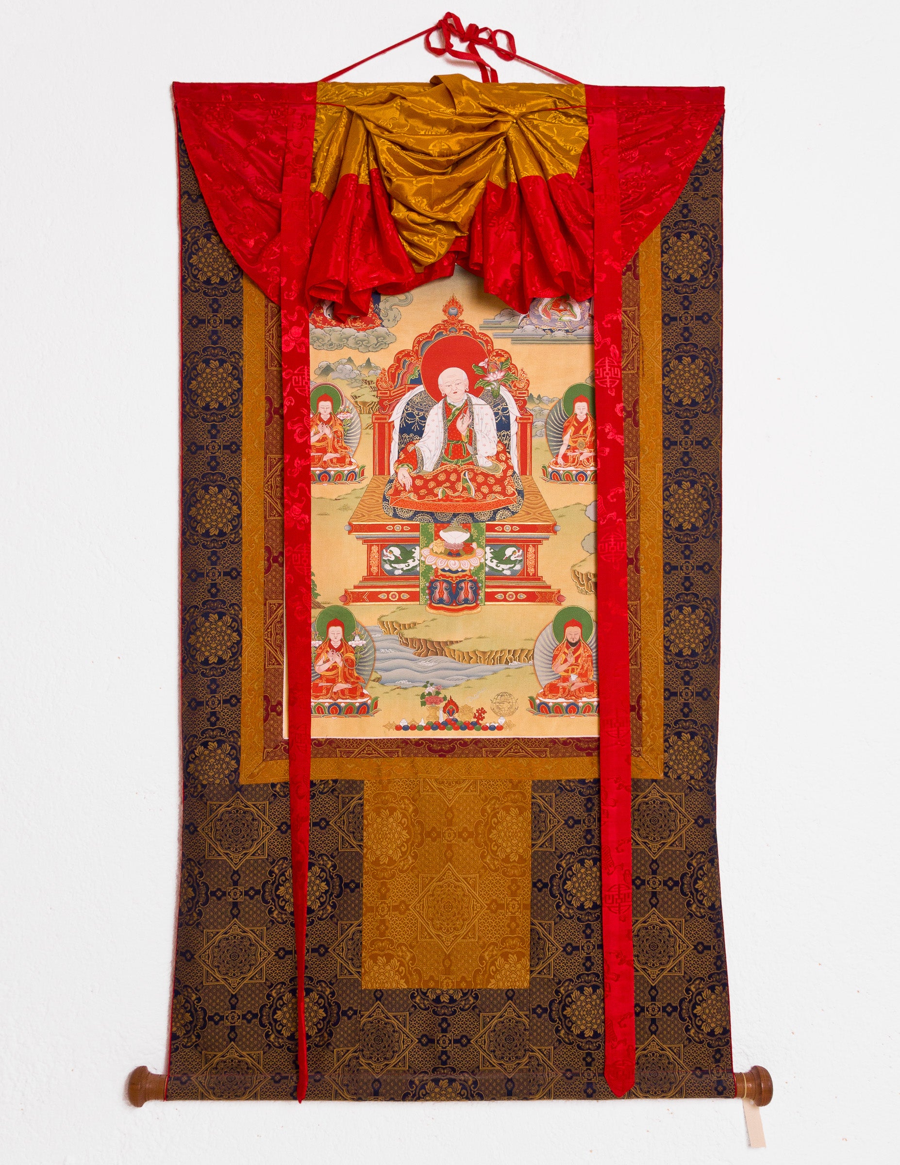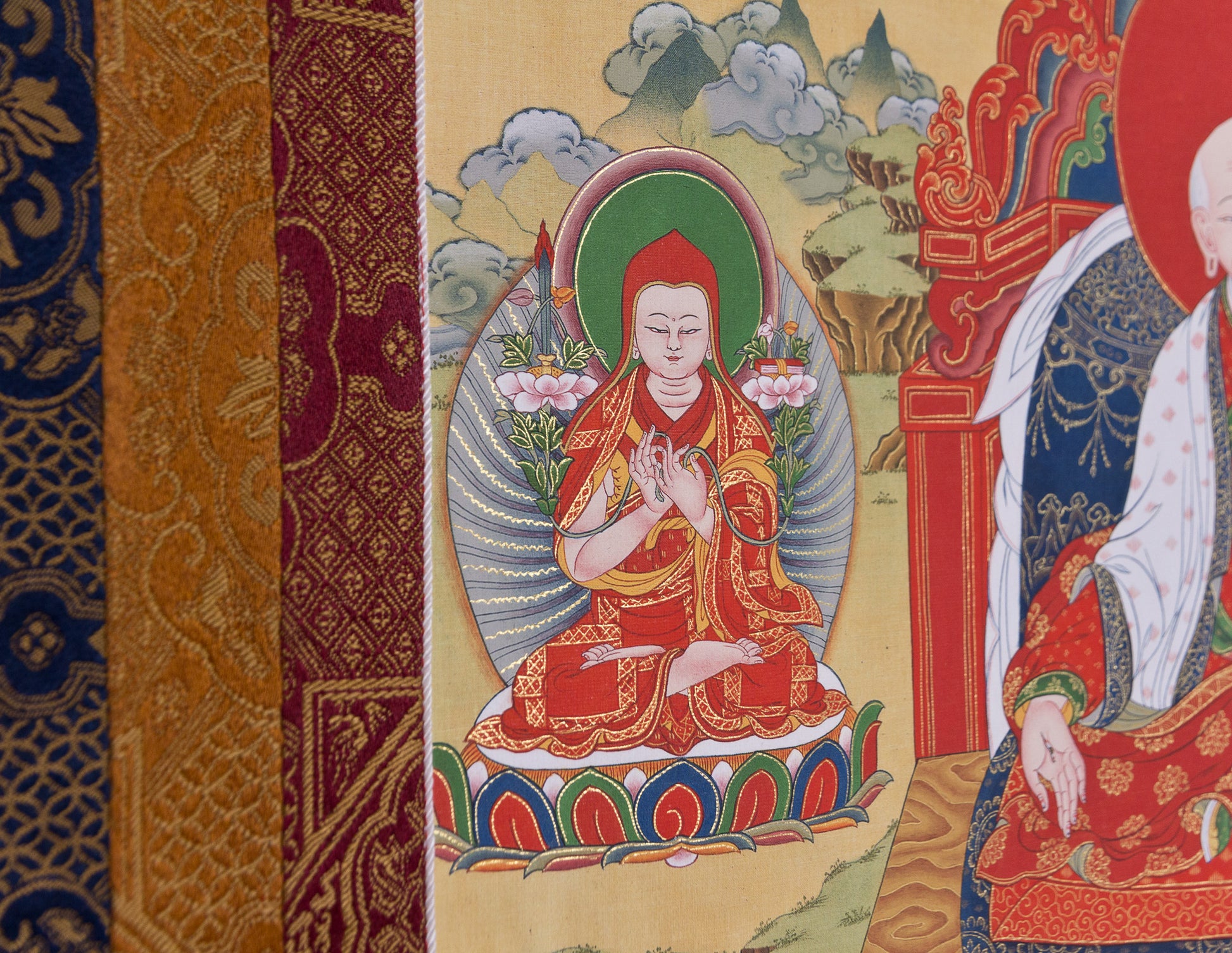 | Yeshe Tsogyal | Yeshe Tsogyal war die Gemahlin von Guru Rinpoche und wird auf Thangkas oft neben ihm sitzend dargestellt. Insbesondere gilt sie als vollkommen erleuchtet und es wird ihr zugeschrieben, Padmasambhavas Lehren niedergeschrieben und als Terma oder „verborgene Schätze“ versteckt zu haben. |