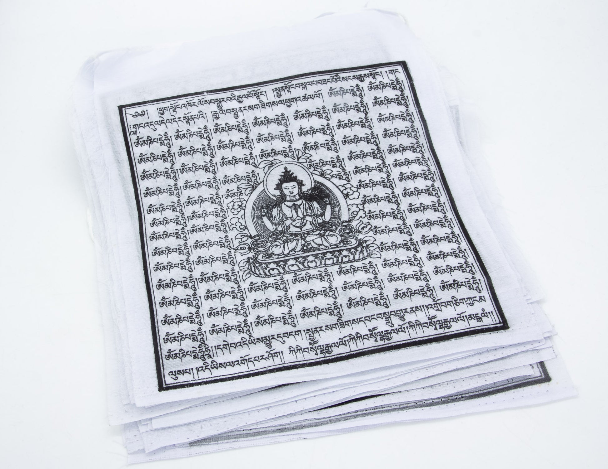 Weiße Chenrezig-Gebetsfahnen, 26x31cm, 6,4m