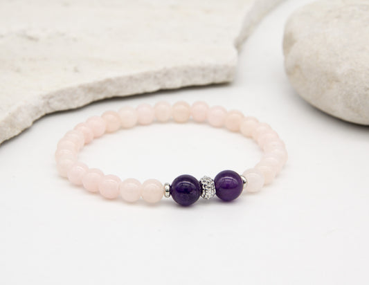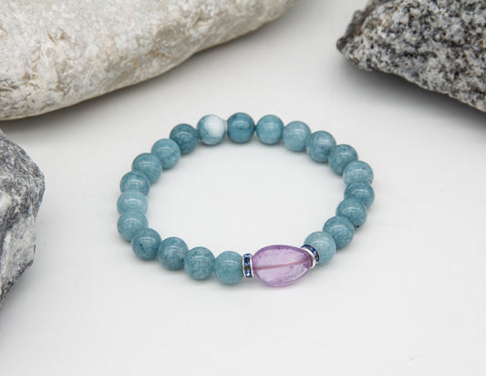 Bracelet aigue-marine naturelle avec pierre violette – 8 mm