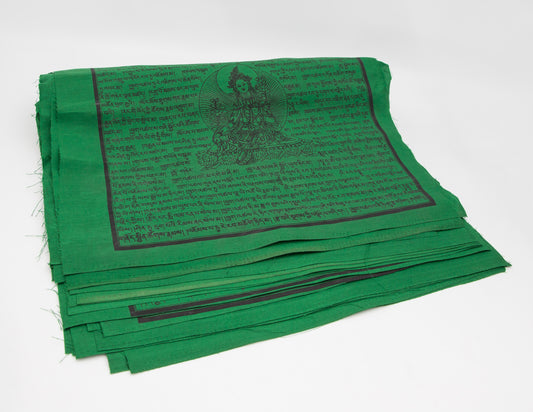 Grands drapeaux de prière Tara verts, 33 x 33 cm, 9,5 m