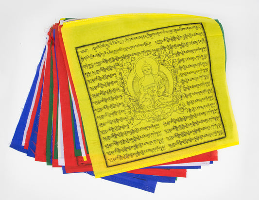 Grands drapeaux de prière Bouddha de médecine, 33 x 33 cm, 9,5 m