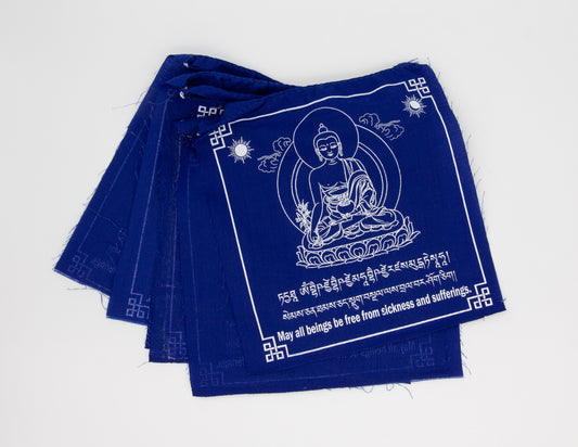 Drapeaux de prière du Bouddha de la Médecine, 12 x 12 cm