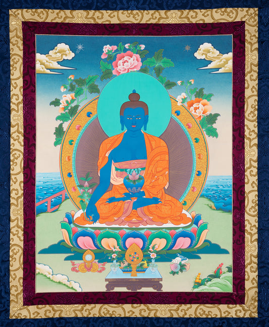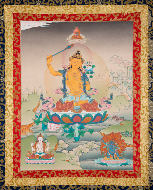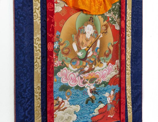 La Thanka est une représentation traditionnelle du Bouddha, des divinités bouddhistes, de leurs attributs et du mandala qui l'entoure. Affiché au-dessus de votre sanctuaire ou sur votre lieu de pratique, il sert d'inspiration et de support pour votre méditation, votre visualisation et votre pratique de la sadhana.