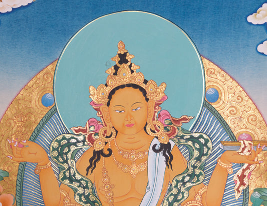 La Thanka est une représentation traditionnelle du Bouddha, des divinités bouddhistes, de leurs attributs et du mandala qui l'entoure. Affiché au-dessus de votre sanctuaire ou sur votre lieu de pratique, il sert d'inspiration et de support pour votre méditation, votre visualisation et votre pratique de la sadhana.