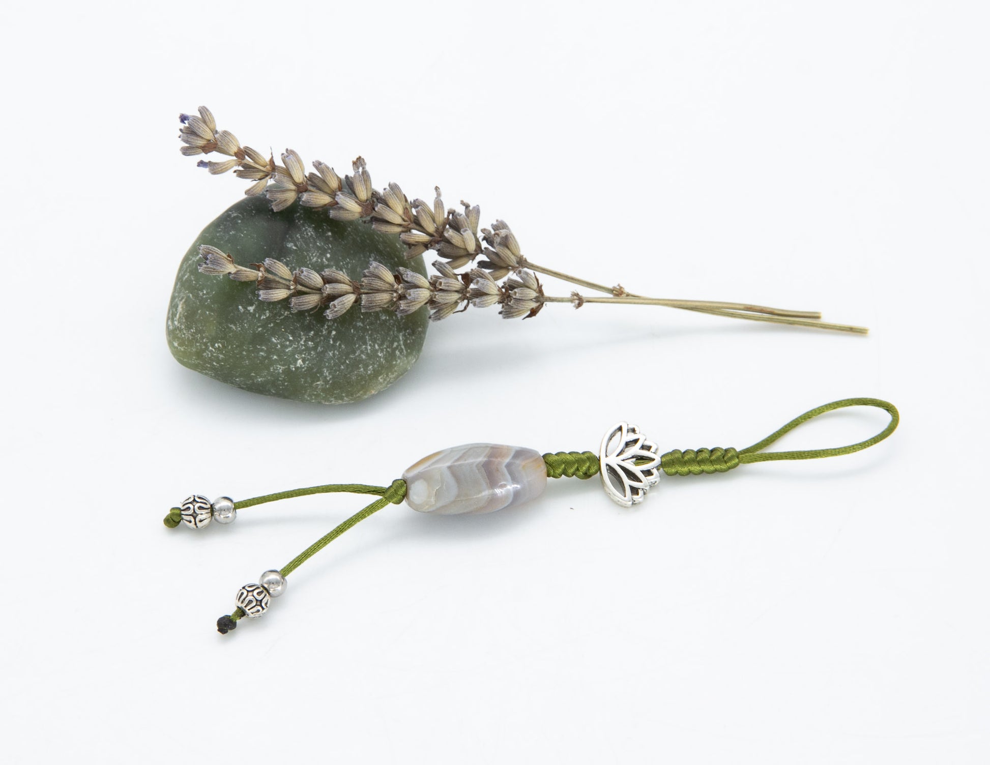 Le porte-clés mesure 13,5 et la pierre mesure 2,5cm.