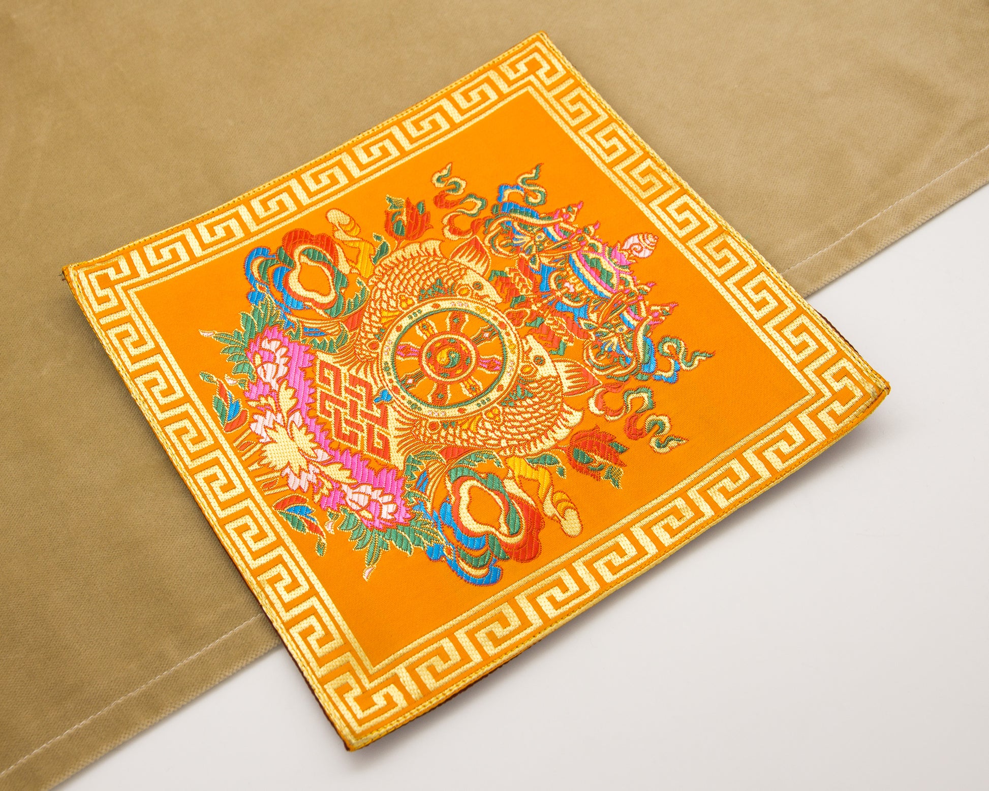 Tissu de brocart carré / Bell & Dorje Mat - Roue du Dharma finement brodée