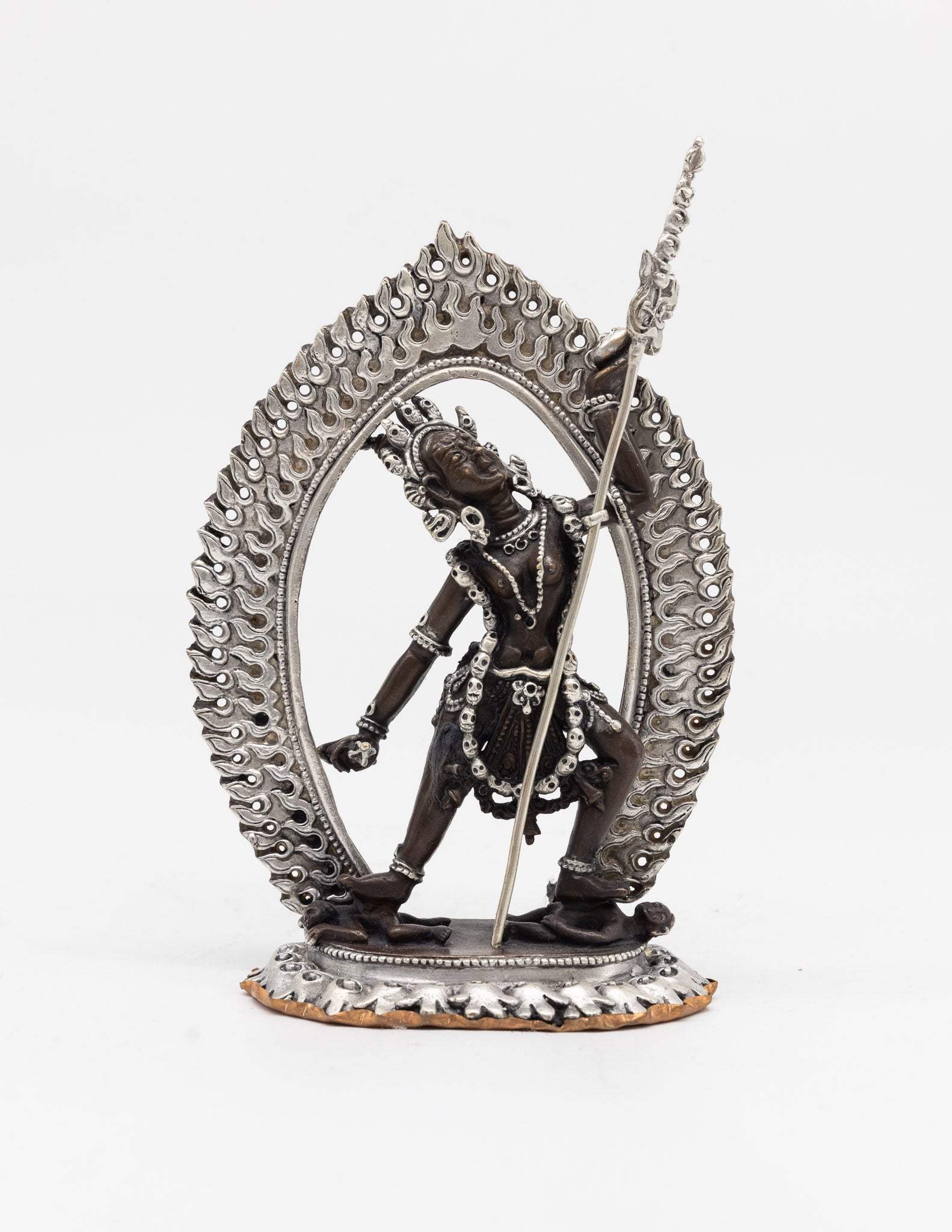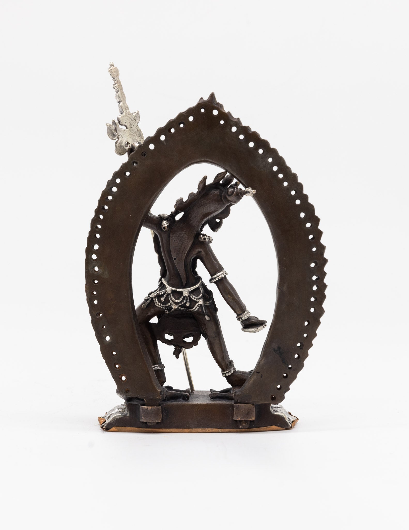 Statue en cuivre oxydé finement travaillée.
