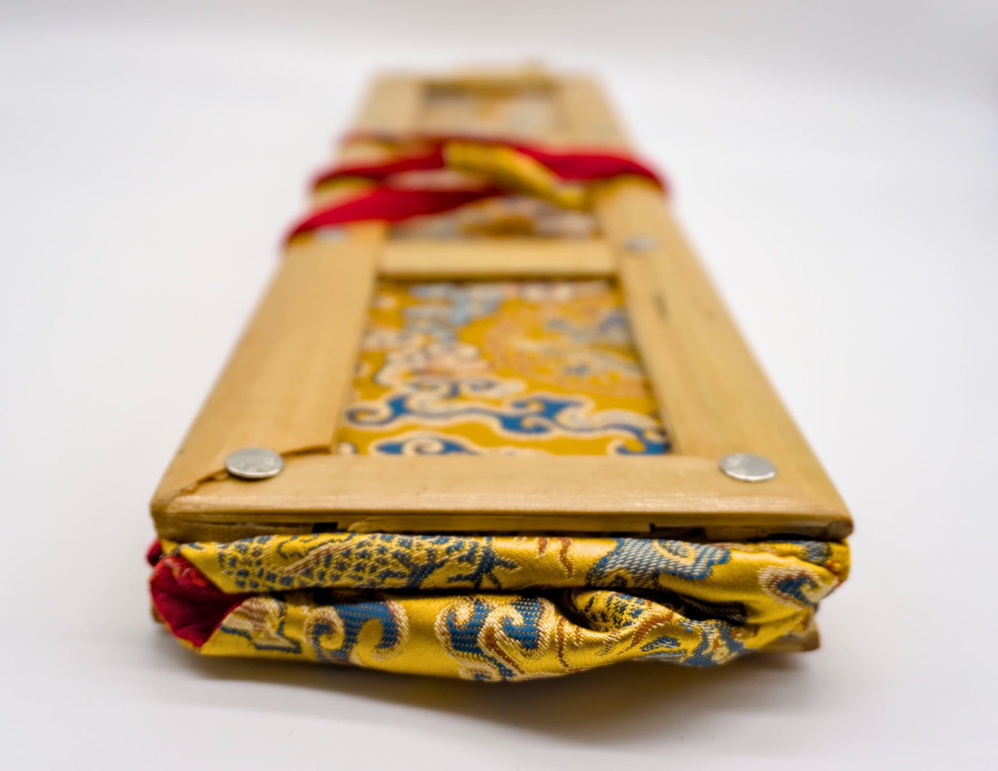 The pecha holder, with its traditional bamboo frame, is a fundamental support for reading your Buddhist texts.